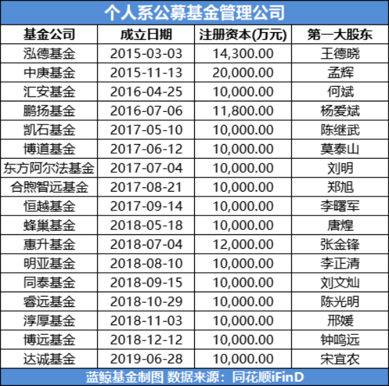自此,个人系公募开始如雨后春笋般纷纷成立,而由于这些个人系公募的股东通常为行业内的明星大佬,因此也格外引人关注。