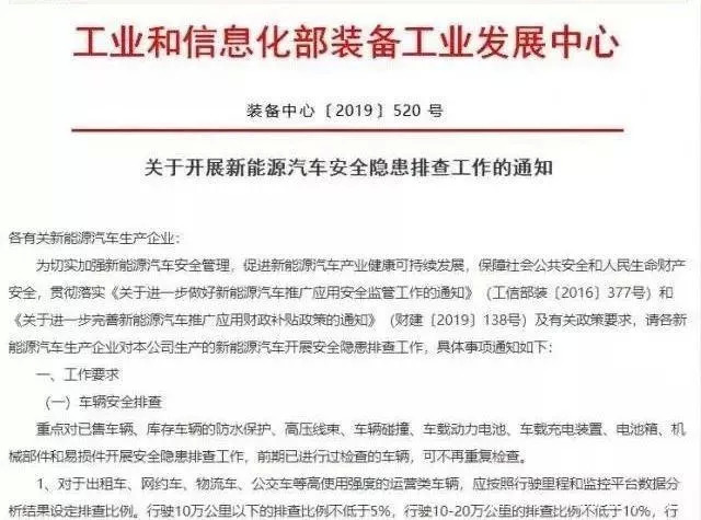 今年以来,中央各部委召开了多次会议,安排了新能源汽车尤其是纯电动汽车的安全隐患排查专项活动。在蔚来宣布召回ES8两个星期前,6月17日,工信部发布了《关于开展新能源汽车安全隐患排查工作的通知》,重点针对已售车辆、库存车辆的防水保护、高压线束、车辆碰撞、车载动力电池、车载充电装置、电池箱、机械部件和易损件。