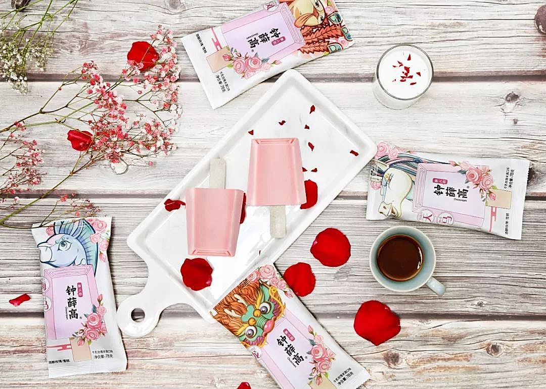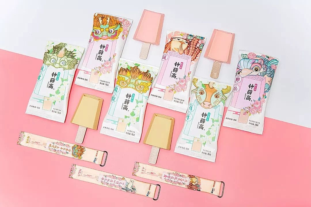 这些“神奇动物”的原型是故宫里的屋脊兽,共十种,分别是龙、凤、狮、天马、海马、狻猊、狎鱼、獬豸、斗牛、行什。它们呈现在钟薛高雪糕包装上的形象变得可爱了很多,画风、配色都挺马卡龙的。这一系列新品已于6月20日正式登陆全国线上线下门店,目前在售的有酒酿玫瑰与手煮茉莉两种口味。