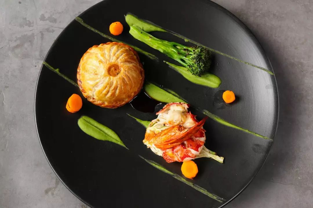 最值得尝试的是夏日西瓜色拉,经过180度高温烤制过的西瓜仍旧充满水分,搭配冰草一起吃,自带清凉感。龙虾惠灵顿是主厨独创的招牌菜,特制香料烧烤酱,利用炭火扒炉锁住新鲜龙虾的鲜味。