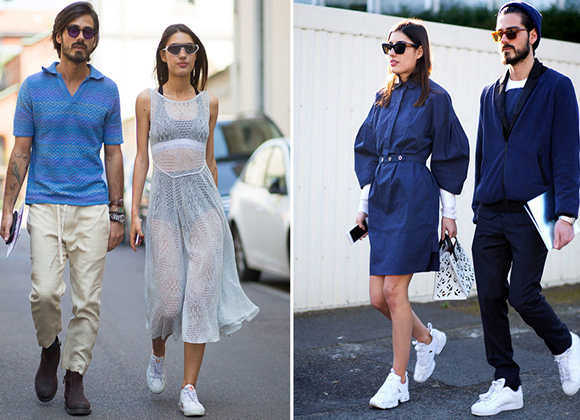 左右两张都是文明人的出行穿搭,但是左边比右边至少凉快十度。如果是情侣,在三伏天穿成左图,估计吵架次数都能减少。