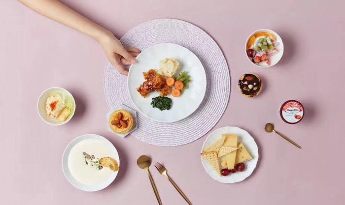 此外,机上的酒具选用了瑞典皇室品牌Orrefors和KORSTA BODA,餐具选用了日本百年品牌Noritake。