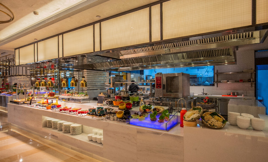 酒店有一个全日餐厅与一个中餐厅。全日餐厅提供来自全球各地的的美食,以自助餐的方式呈现。另一个餐厅是豪廷轩中餐厅,提供浙江经典菜品、广式风味及当地特色美食。同时酒店也结合安吉的在地特色鲜笋,作出不少特色的食物。