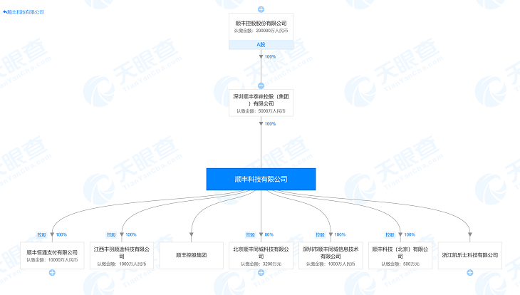 天眼查提供的信息显示,顺丰科技为顺丰控股的孙公司,由顺丰泰森全资控股。尽管这家公司注册资金仅5000万,但却是顺丰控股黑科技产品的源头。根据顺丰科技介绍,该公司提供的产品包括大数据生态、人工智能、智慧地图、无人机、自动化机器人、顺陆等。