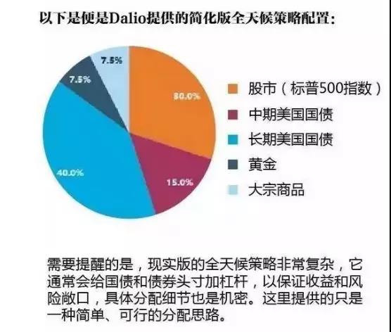 达里奥的全天候策略,正是典型的宏观策略。在不同的经济场景中,通过配置股票、各类债券(长期美国国债、短期美国国债、新兴市场债、通胀保护债券、公司债等)、大宗商品、黄金等资产,来控制风险并取得收益。