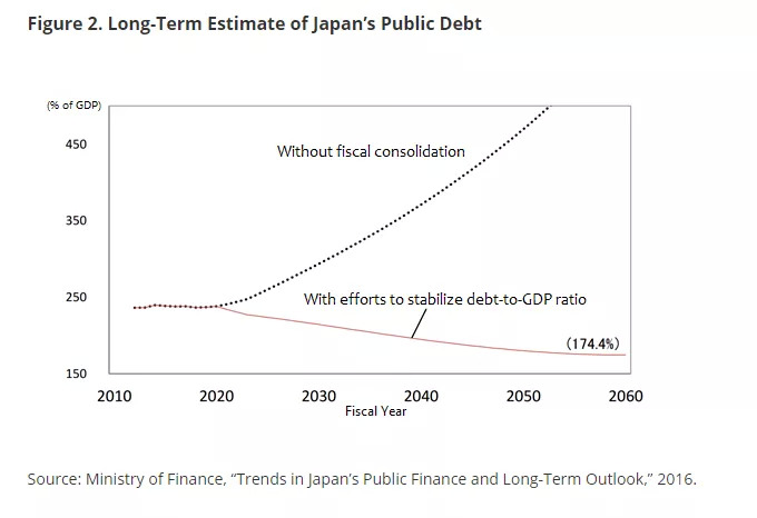 只要投资者(主要是国内金融机构)继续购买政府债券,不断上升的债务与GDP之比就不会让日本经济脱轨。他们继续购买这些债券的原因是因为他们相信政府最终会还钱。经济学家指出,日本私营部门持有1800万亿日圆的金融资产,以缓解对日本财政立即崩溃的担忧。但这种保证的前提是政府引入新的税收,以避免违约,并偿还债务。换句话说,市场对日本国债的信心是建立在未来某个日子会大幅增税的基础上的。