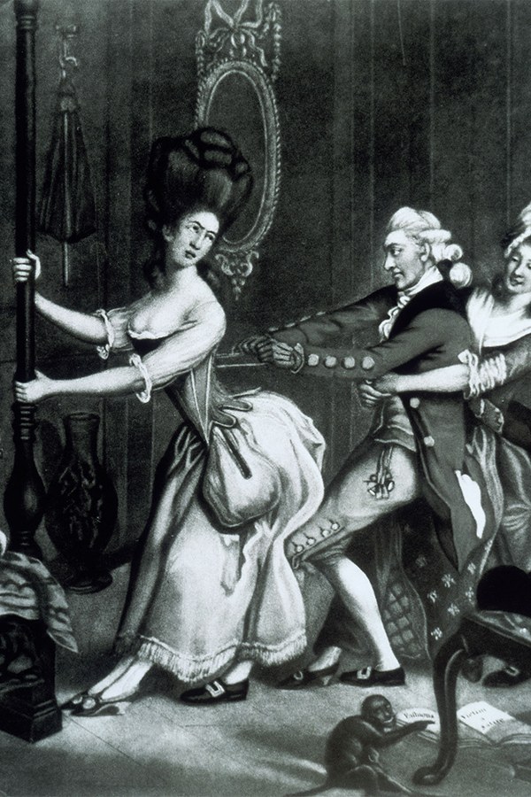 穿束身衣从来就不是件舒服的事儿。这种17世纪开始在西方兴起的服装最早由鲸骨制成,它会紧紧箍住穿戴者的肋骨并把正常的腰部收缩得极为纤细。电影《泰坦尼克号》里Rose的母亲为她穿戴束身衣的片段还让许多影迷记忆犹新,女性穿上古典束身衣的痛苦也在影片中无比清晰地得到展露。