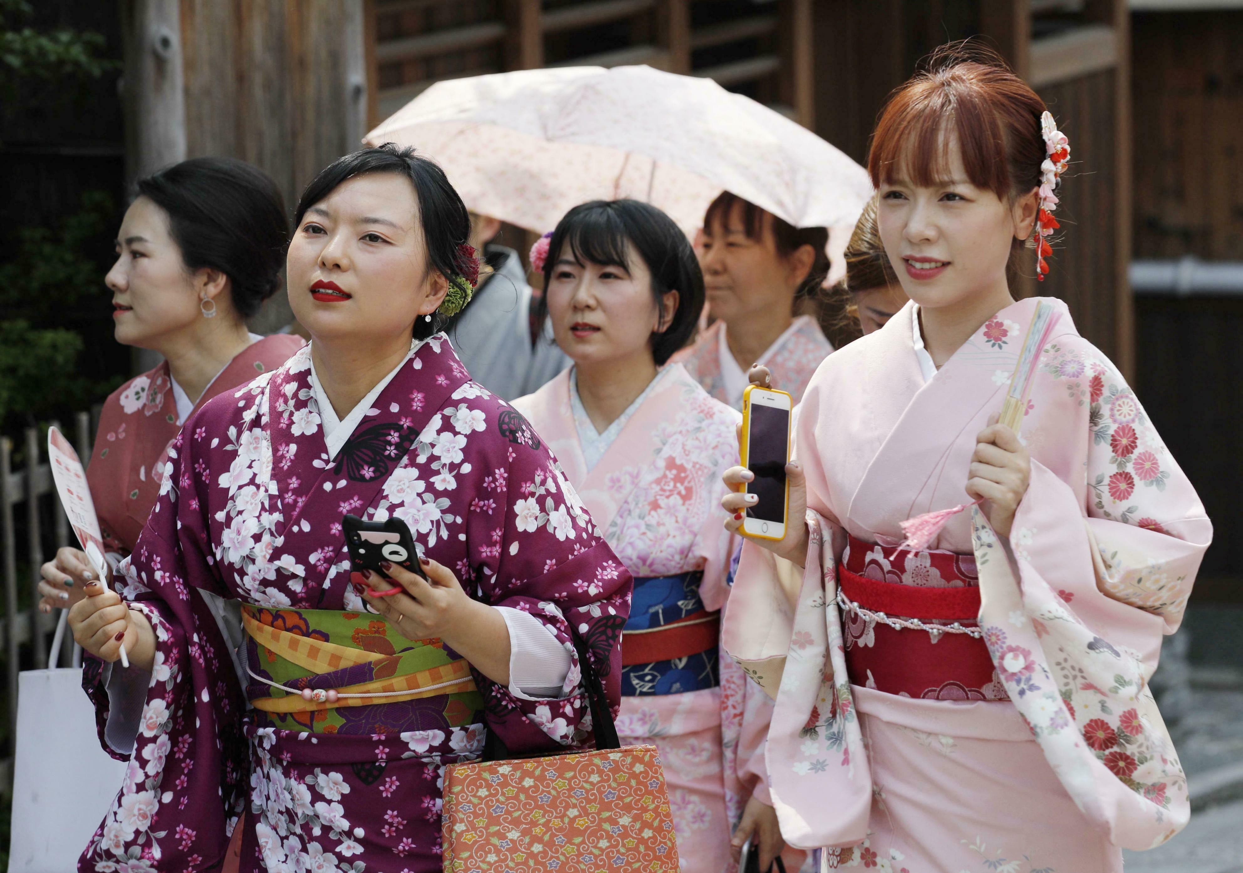 并称,这些年他很高兴看到各国游客喜欢穿和服。不过为了保护这一文化遗产不被垄断,因为京都市正在申请和服为联合国教科文组织的非物质文化遗产。