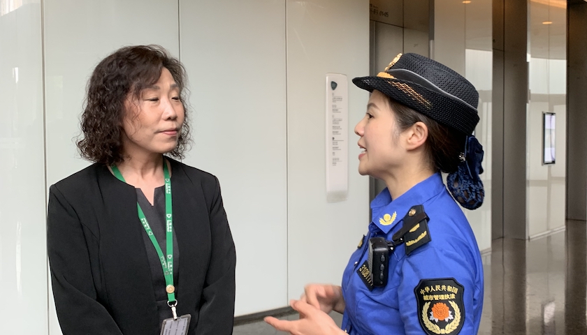 随后,陆家嘴城管执法中队来到了上海中心大厦。这座摩天大楼是陆家嘴乃至整个上海的地标性建筑,既有办公区,也有零售区。