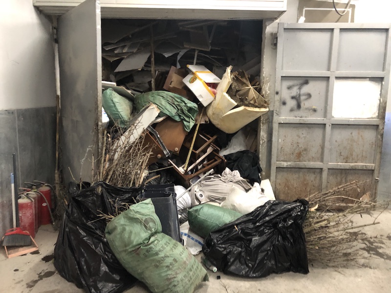 晶品购物广场地下车库的垃圾厢房里,10个垃圾桶排成一排,颜色包括红色、绿色、棕色等。城管执法人员表示,垃圾桶颜色不统一,标识不统一。在广场一处仓库内,城管执法人员又发现堆积了保温泡沫、塑料、树枝等垃圾的一处角落。秦列指出,泡沫属于可回收垃圾,树枝属于湿垃圾,且该仓库内还存放有建筑垃圾,属于典型的混合投放。界面新闻获悉,购物广场方面并未主动向城管部门申报该处仓库,存在瞒报情节。