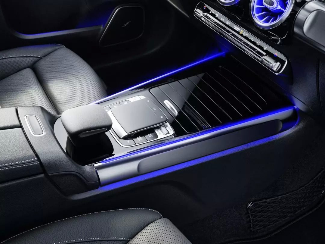 况且GLB也并不是一昧套用现成设计,它在门板、中控台饰条等细节处也做了一些调整,虽然整个布局形式已经没有什么新鲜感可言,甚至还有一点功利气息,但在这个大屏被滥用、车内基础美感都惨遭破坏的时代里,奔驰的设计依然保留着豪华感,仅此一点,就足以让GLB和很多同价位车型区分开来。