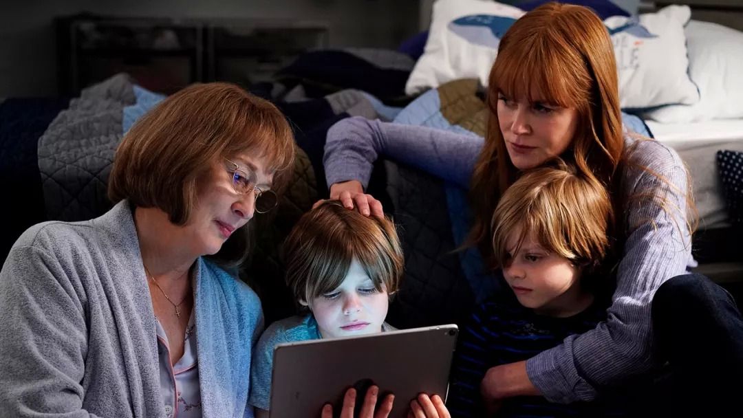 五个女性主角由两拨小群体的对立走向结盟,人与人的冲突变成自我应对创伤、解决家庭麻烦时,主题足够沉重深刻,但观众不一定耐得下性子看。斯特里普饰演的新角色加入,在照顾孙子的同时渴望找到儿子死亡的「真相」,并敏锐地察觉到有人在隐瞒着什么,这就带来新的推动力。