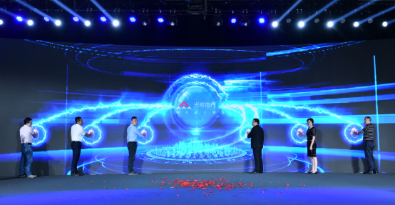 △领导登台启动“光明耀川渝”战略的合影