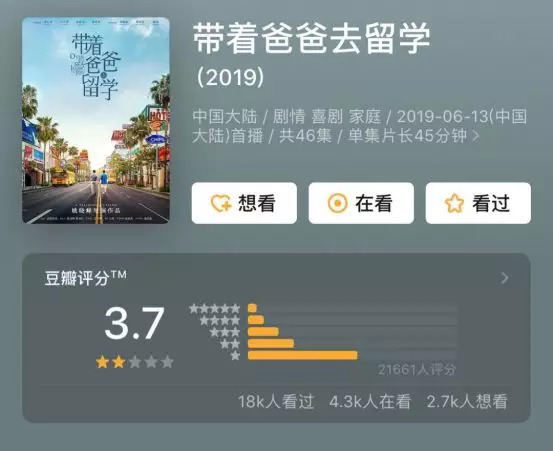 其实无论是《少年派》还是《带着爸爸去留学》都能看出这两部剧的野心,他们不甘心只做青春剧,或者只做家庭剧,他们想涵盖更多年龄层的观众,所以他们在剧情上进行了创新,更加注重营造剧情上的戏剧性,这跟以往这类剧靠演员的表演和生活的细节在支撑剧情是有所不同的。