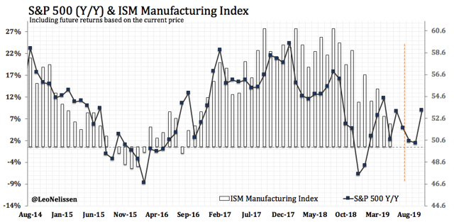 未来几个月,如果标准普尔500指数还在这里晃荡,换句话说,如果ISM指数在未来1-3个月内跌至50以下,那么市场还有再次下跌的空间