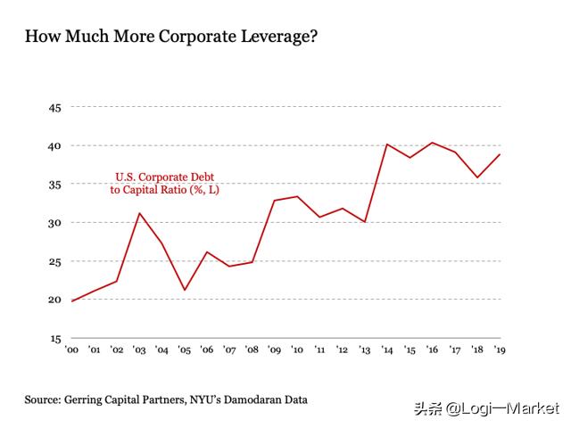 或许这次不同,上市企业面临着越来越大的挑战,由于公司花了这么多年借钱回购股票,他们已经将集体资本结构扩展到历史边界。例如,美国企业债务与资本比率在千禧年之前曾一度在20%左右,在金融危机期间约为25%,现在大约为40%