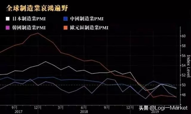6月份最新的领先指标显示经济势头正在进一步下滑,全球主要经济体制造业数据集中在周一公布,可以用“哀鸿遍野”形容,中国制造业在6月收缩,欧元区制造业萎缩速度更快,英国的制造业指数则跌至2013年以来最低,美国的制造业指标也连续第三个月下降