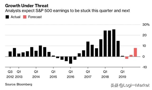 源于全球贸易紧张局势以及美国国内增速放缓,美国企业的盈利自去年以来大幅下滑,国际货币基金组织的经济学家认为,美国经济在今年的增速将降低至2.3%,与之相比的是,美国经济在2018年的增速为2.9%,对2020年的经济增速预测值为1.9%