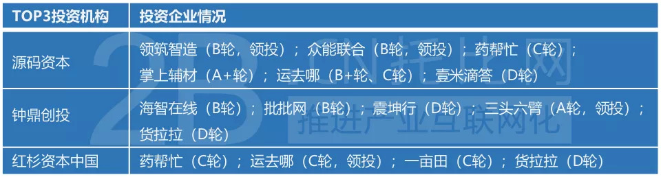 关注B2B企业的投资机构较为分散,源码资本、钟鼎创投、红杉资本中国成为投资量TOP3企业