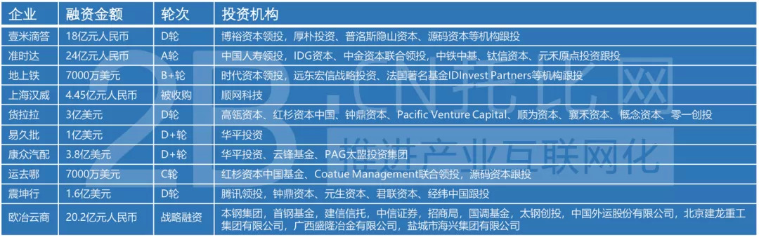 如果比较各细分领域的融资金额,则排名前五分别是物流、汽车、钢铁、工业、快消领域,其中物流领域共计披露吸金额度达到75.71亿元人民币,成为上半年B2B领域中吸金最多的领域。