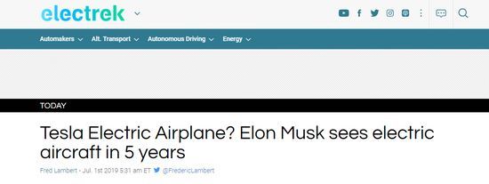 ElectrekCo主编Frederic Lambert指出,电动飞机结合了马斯克的两家公司,即特斯拉和SpaceX的专业知识。无论马斯克有意开发电动飞机与否,如果动力电池能量密度能在五年后提升超过30%,这不但令电动飞机成为可能,也有利于特斯拉电动汽车。