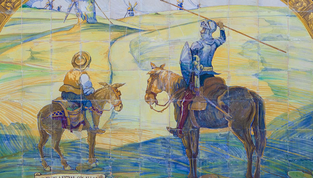 堂吉诃德和桑丘·潘沙是塞万提斯笔下最伟大的两个人物,在他们的身上,就有塞万提斯本人信仰和理想、失落和失望之间挣扎的延伸。西班牙奄奄一息,还罩着宗教和血统纯正的外壳,塞万提斯一开始,就像当时所有的年轻人,忠于西班牙的身份,忠于作为基石的荣誉。就像是堂吉诃德,“他要铲除这世间一切的暴行,他要抓住一切机会,置身危险当中,除暴安良,赢得千古美名。”