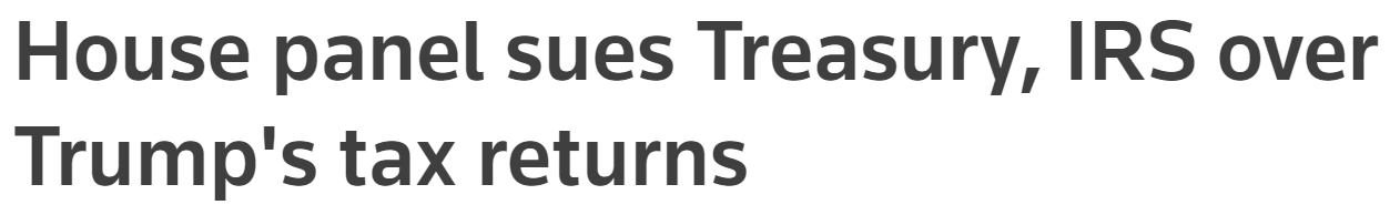 【美众议院委员会因特朗普报税起诉财政部和国税局】民主党领导的美国国会众议院一个委员会周二终于向联邦法庭提起诉讼,要求获得总统特朗普本人及其企业的纳税申报文件。