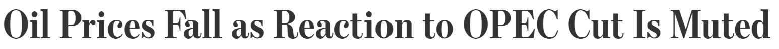 【油价下跌,市场对欧佩克减产反应冷淡】石油价格延续跌势,原因是投资者对于欧佩克减产决定并不在意,而更多关注需求的减缓。