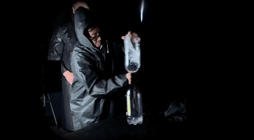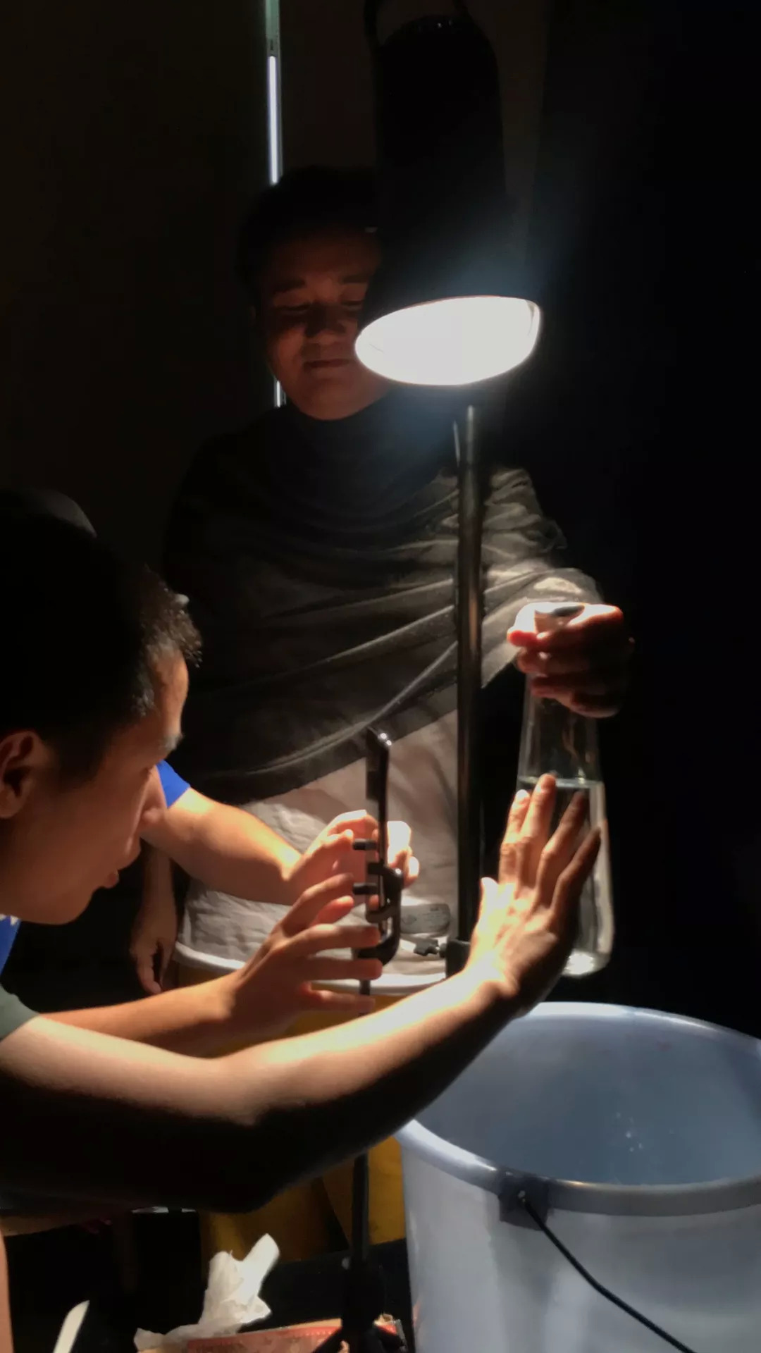 拍气泡?团队找了个超大柱状玻璃容器,在容器下面转了个水泵,直接隔着玻璃拍,没想到吧?