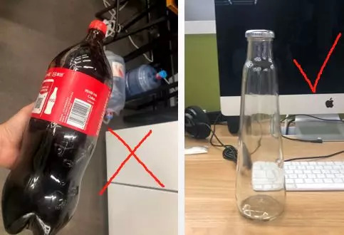 首先得找合适的瓶子,我们把目光放到了公司囤积的肥宅快乐水上,这瓶子虽然够大,也够透明,但缺点是瓶身的纹路,不适合拍摄。所以我们去了趟小卖部,找了个瓶身光滑透明的玻璃瓶,这下就不会影响拍摄效果了!