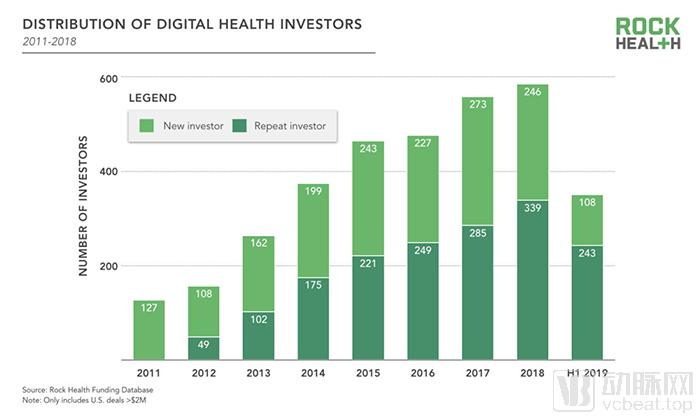 2011年至2019年新老投资者占比(图片源自Rock Health)