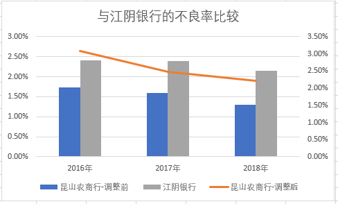 值得一提的是,经过上述调整后的昆山农商行不良贷款率将与可比银行——江阴银行处于大体一致的水平。昆山与江阴同时位居全国经济百强县前列,两家银行规模相当,经营模式也非常接近,后者已经于2017年实现A股上市。据江阴银行当时的招股书披露,其在报告期内未发生重组贷款。这就让数据的比较具有更大的参考意义。