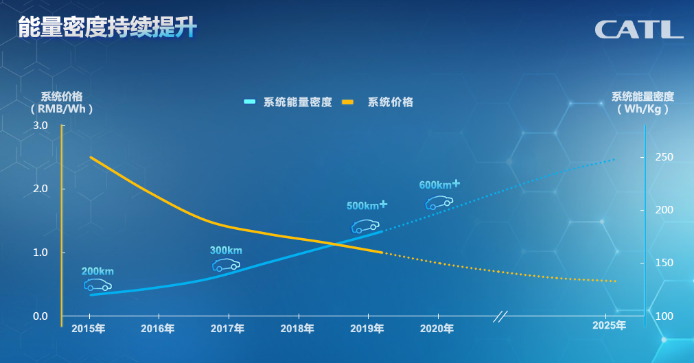 曾毓群表示,动力电池的系统能量密度在2025年可达到250Wh/kg、不含税价格可降至0.7元/Wh。