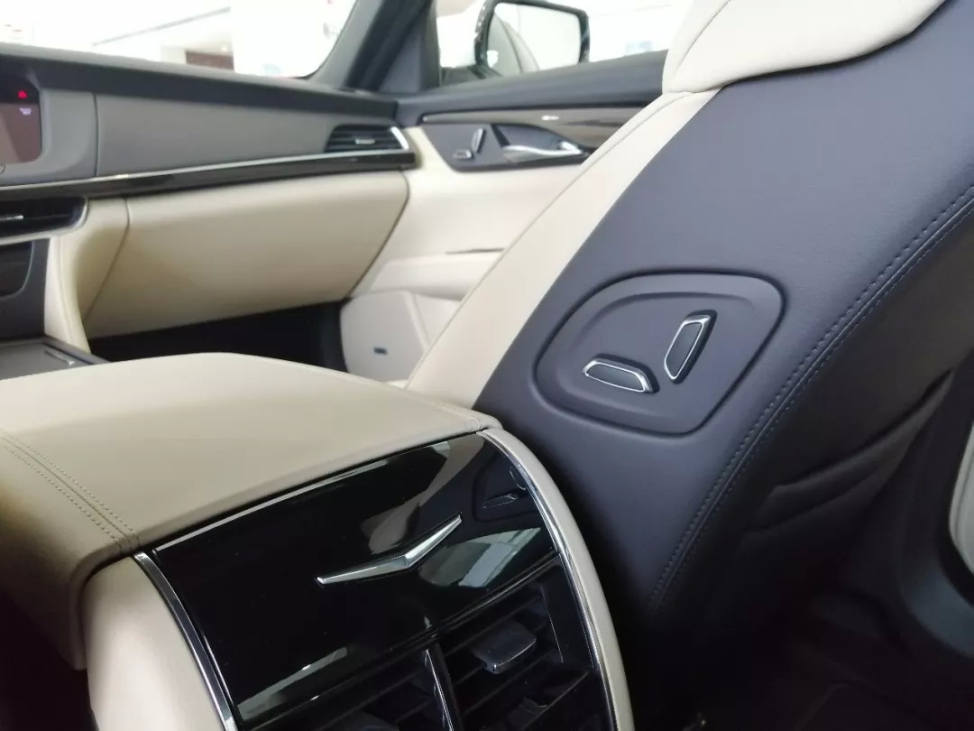 有尺寸轴距摆在这儿,虽然因为给修长的发动机舱预留足够的空间,留给乘客的享用空间并没有比竞品单独加长来得直接,从某种程度来讲,CT6的空间甚至没有明显超出XTS,但对于旗舰级而言,座椅的厚度、角度,车内的氛围、材质,才是乘坐品质的体现。哪怕是优惠后不到30万的最低配,虽然仅配备了仿皮座椅、浅色内饰,但凯迪拉克仍然将仿皮做得比自家真皮还要细腻柔软,加上本身宽大柔软的座椅承托,至少从前后排座椅舒适度而言,CT6在50万价位内,当得上前三的水准。