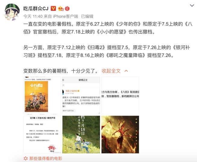 原定于6月27日上映的《少年的你》和原定于7月5日上映的《八佰》官宣撤档后,其他片方纷纷瞄准了空缺的档期。