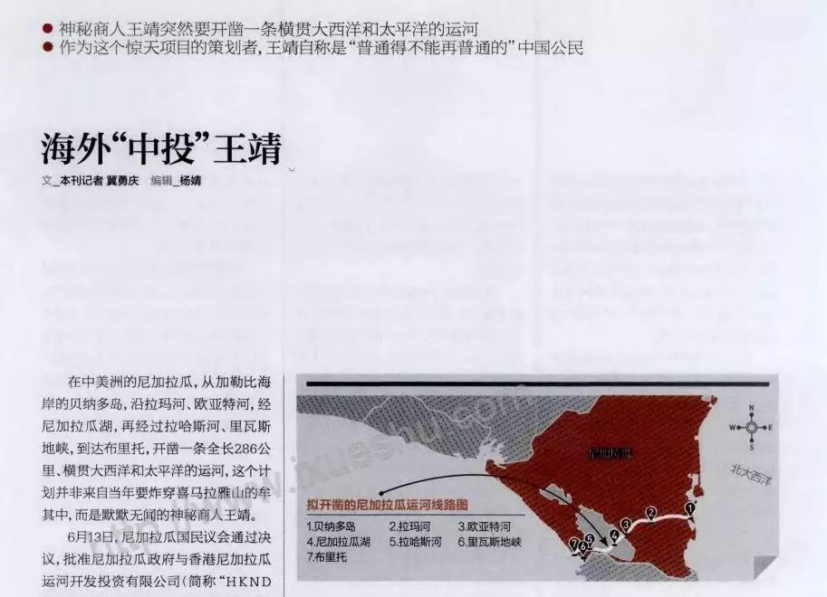 因为要投资500亿美元在尼加拉瓜开发运河,王靖为自己赢得了“运河狂人”的称号,而这只是他在海外的众多项目之一。
