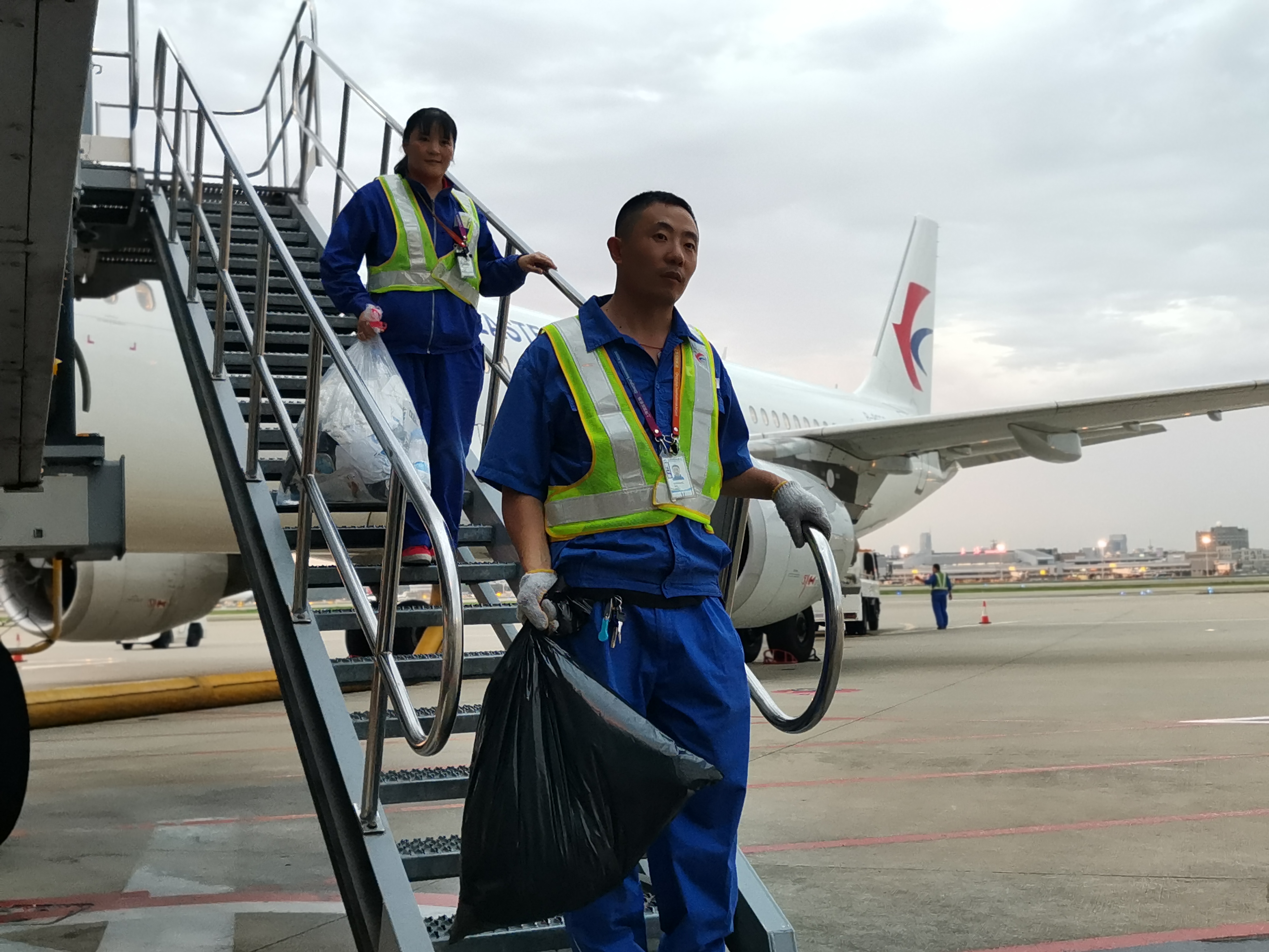 作为上海基地航空公司,东航每日都有约30吨机上生活垃圾从上海虹桥、浦东两大机场的航班上卸下。