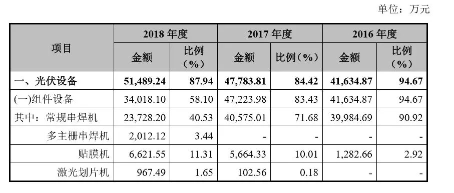 收入而言,串焊机和分选机是拉动企业发展的两大引擎。两者创造的收入2.57亿和1.6亿(2018年),占整体营收比重的70%以上。