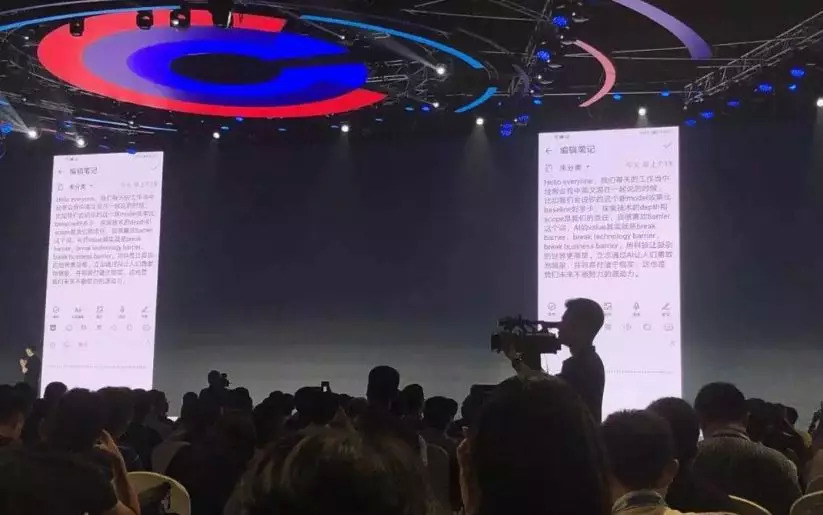 百度语音技术部高级总监高亮展示了百度输入法语音中英混输的技术效果。在现场高亮口语说了一段中英文混搭的长句:“Hello Everyone,中英混合说是我们的everyday work,Explore技术的depth和scope是我们的responsibility……”