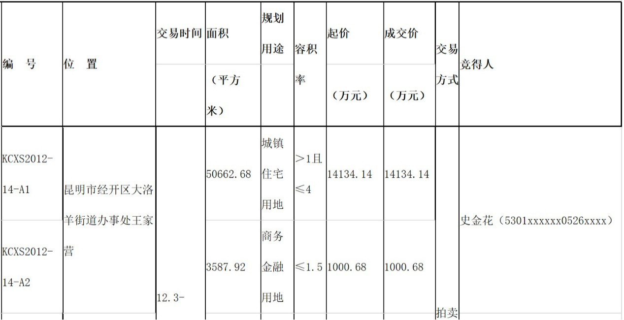龙湖半山,即原御龙春晓项目的用地于2012年12月初时挂牌,这两宗编号分别为KCXS2012-14-A1和KCXS2012-14-A2的土地面积合计54250.6㎡,用地性质分别为居住及商业,挂牌价15134.82万元。2012年12月27日挂牌到期后,史金花以底价1.51亿元将土地收入囊中。而云南天骏房地产开发有限公司也是在当年的12月10日登记成立的。