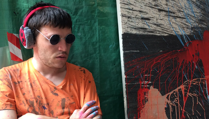 在展馆的后面有一面带轮子的画墙,可以随时推走这些创作者的作品。谢里夫将在这个临时的画布上创作(他告诉我,“人们会认为它很棒”),跟他一起创作的还有山姆,他的作品狂野而富有表现力,那些凌乱的流体画练习将被转送到滨海贝克斯希尔朴素的白色画廊空间。