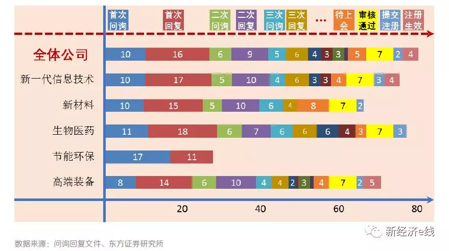 科创板不同领域公司申报后各环节平均处理时间数据