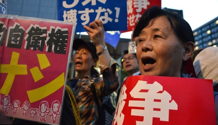 7月15日,日本众议院和平安全法制特别委员会表决通过了安倍晋三力推的新安保法案。该法案将于16日提交众议院全体会议表决,并在众议院通过后提交参议院审议。15日晚,超过2.5万名市民手持“不要破坏宪法第九条”、“安保法案违宪”等标语在国会前抗议。这已经是日本民众连续第四天集会示威了。
