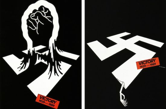 1988年,他为一次以二战时期针对犹太人的种族清洗为主题的研讨会设计了海报《Remembering for the future》(为了未来的记忆)。同样是红色和黑色,无数只绝望的手掌伸向天空。