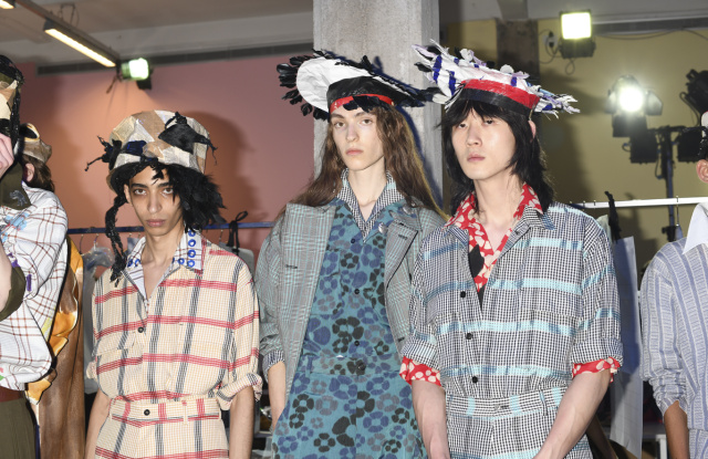 有温馨的,也有古怪的。Marni男装在本季大秀上展示了多顶不规则形状的帽子;它们大小一样但花式古怪,全部由废弃的羽毛和塑料垃圾装饰。这些帽子是由品牌设计师Francesco Risso委托艺术家Shalva Nikvashvili制作而成,希望在创意之中传单环保概念。