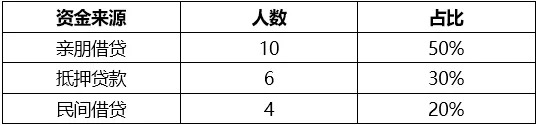为了分析酒商资金来源和使用情况,云酒头条调研了全国20家典型经销商,他们分布全国,年销售额最高不超过5000万,属于中小酒商。调查结果显示:亲友借贷和抵押贷款,依然是其经营资金的主要来源。