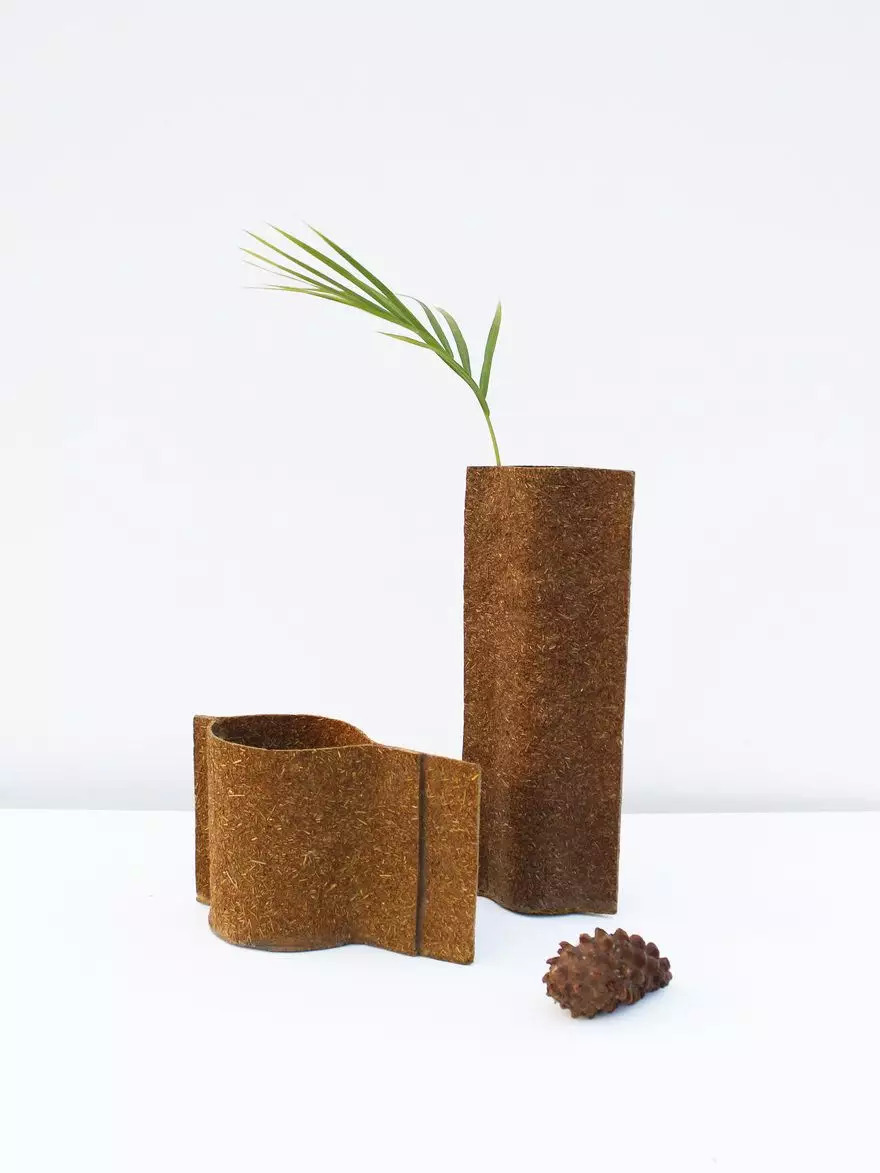 “Cheer Project”通过切碎分离松针的纤维,在天然粘合剂和蜡的帮助下创造了新的应用和可能性,这种丰富且不被需要的材料有机会开发成100%生物基和可生物降解的复合材料。