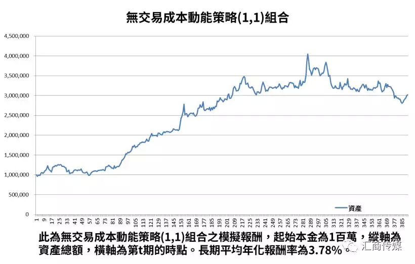 并且研究结果还同时显示无交易成本、50%交易成本、100%交易成本的状况。要观察外汇市场有无动能、动能反转现象,可关注无交易成本的结果。而由于本研究所用的资料其报价点差较实务交易大不少(点差愈大,交易成本愈大),因此 50%交易成本的结果会较 100% 交易成本的结果更接近实务交易。