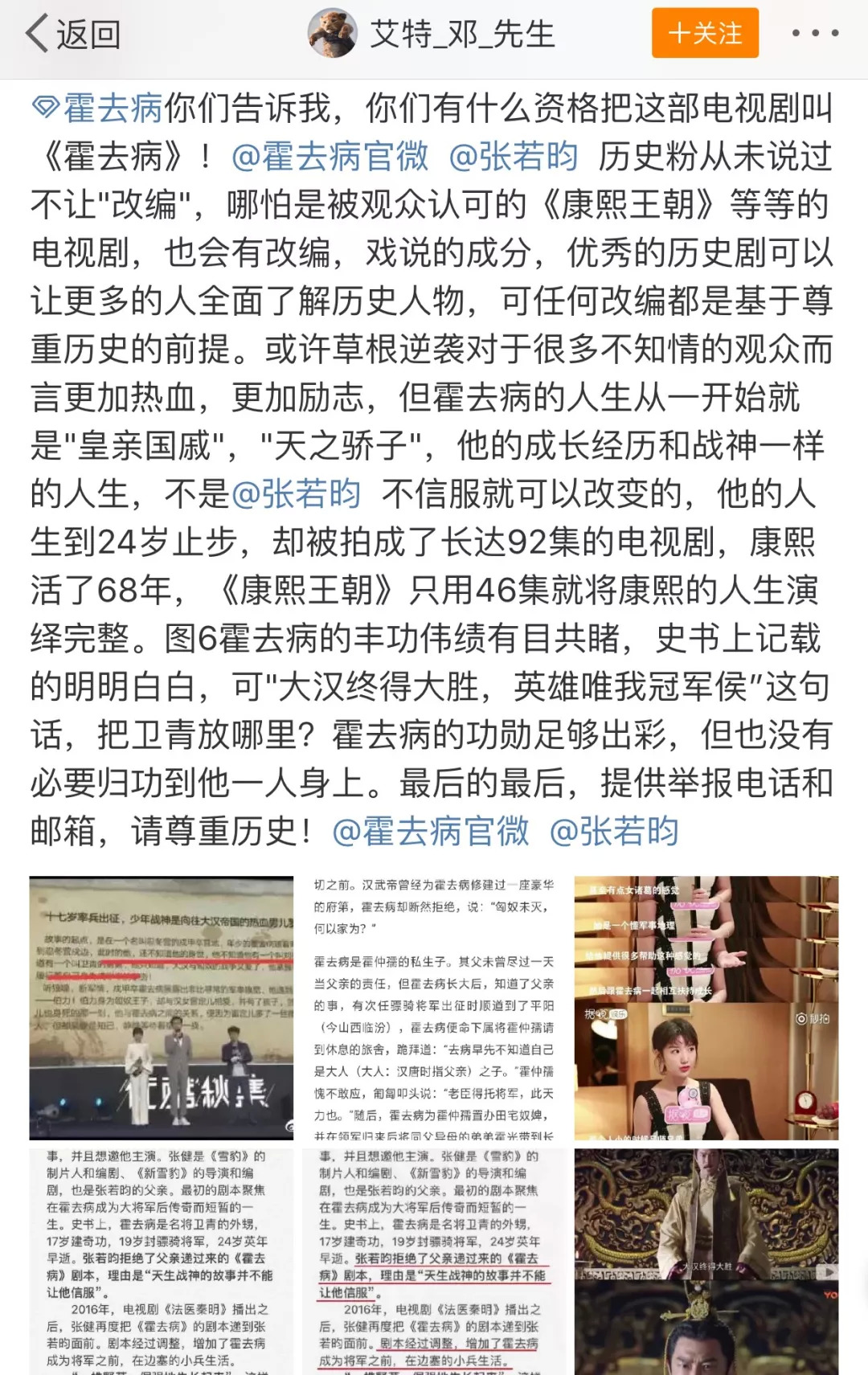 关于历史正剧的创作,不少观众还是持不能“戏说”的态度,《巴清传》因篡改历史被网友群起抵制就是前车之鉴。《霍去病》如果涉及原则问题,那影响的不止是导演张健的口碑,或许还有主演张若昀的观众缘和好感度。