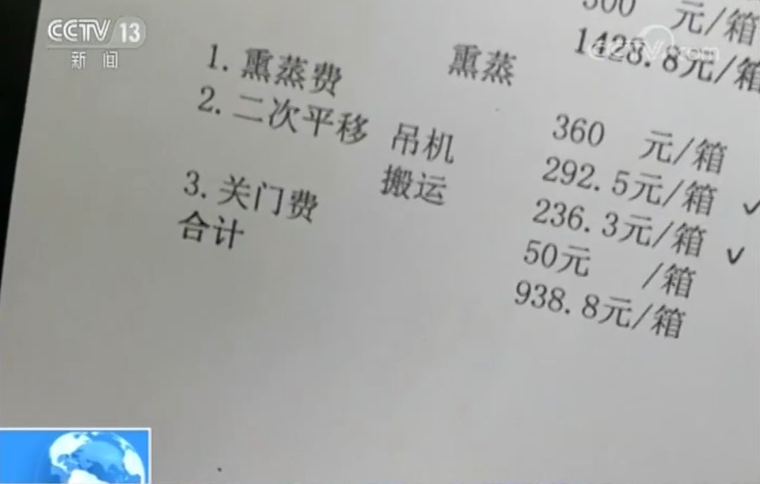 而在某公司提供的一张货物查验与木材熏蒸费用清单上,列有一项叫做关门费的收费。经调查组人员询问,这个费用也是由晋西龙公司收取,费用为50元每箱。